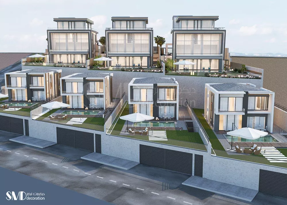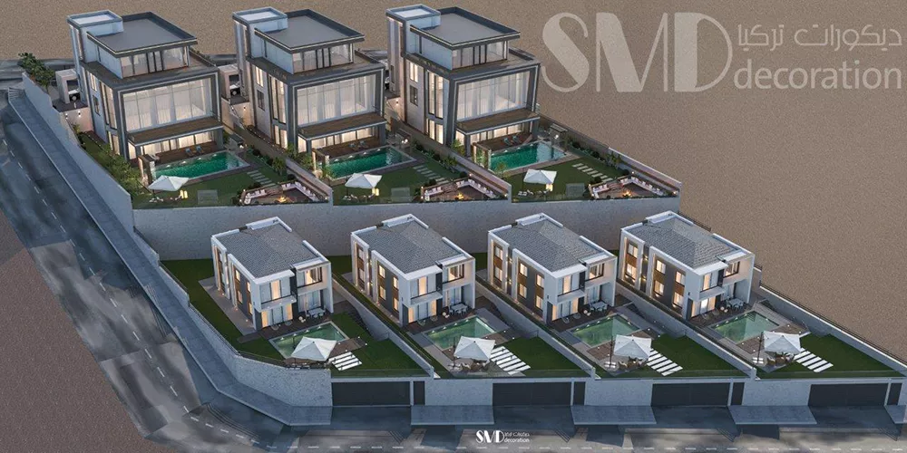 SMD GROUP designed and implemented a residential complex consisting of seven villas in Turkey, Istanbul. The complex is designed in a modern style and provides unparalleled security thanks to the advanced technologies used by the company. The complex also offers stunning interior and exterior designs, created by the highly trained engineers and designers in the group. Moreover, the complex offers a range of services such as decoration, cladding, and custom-made furniture.