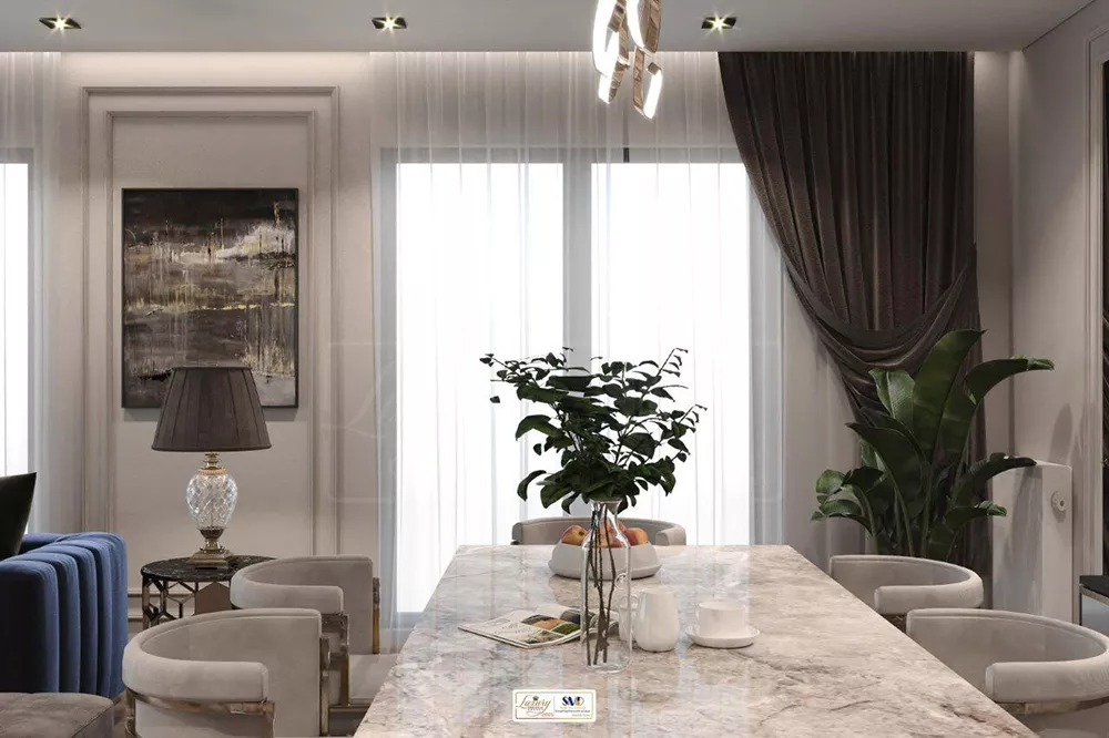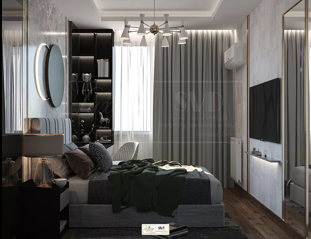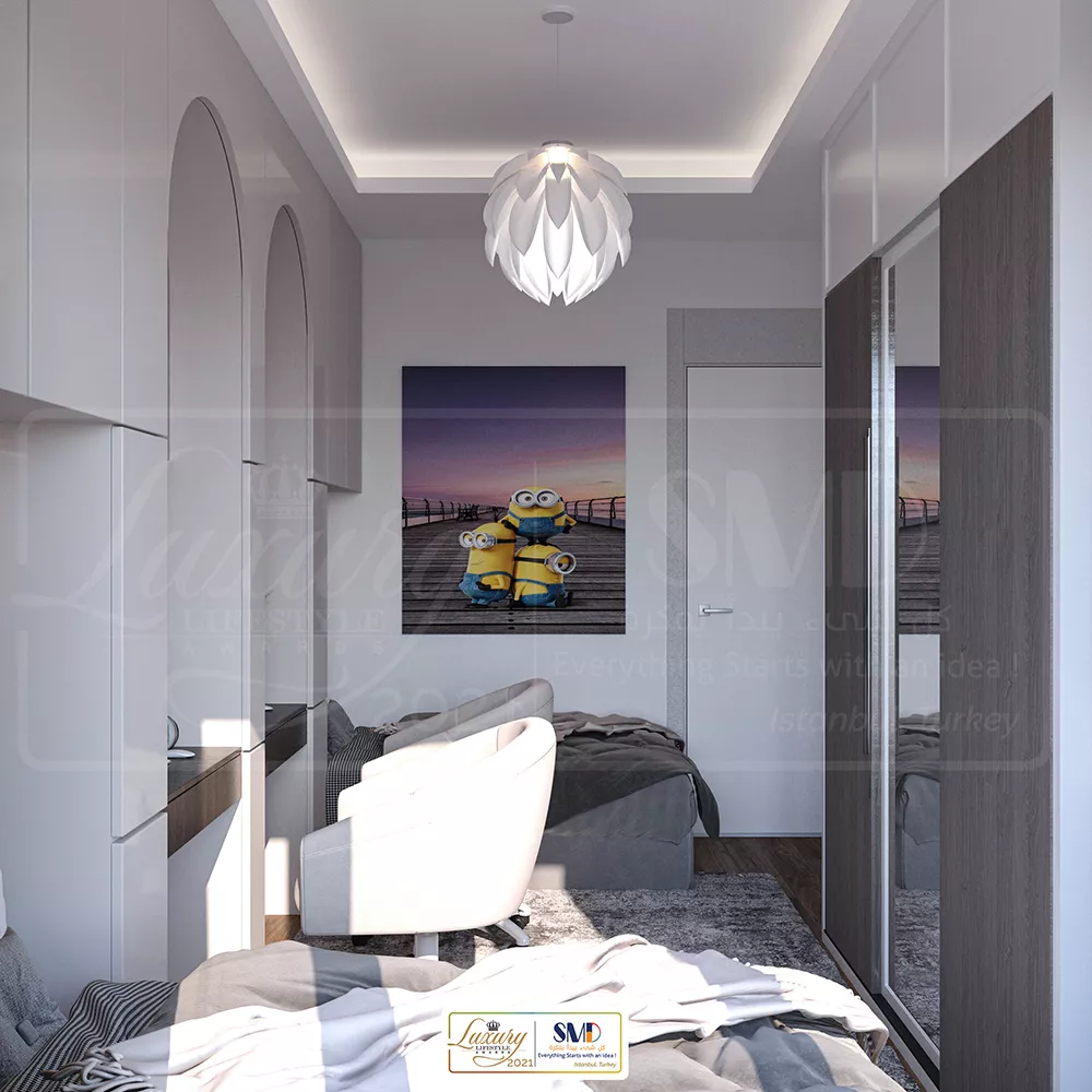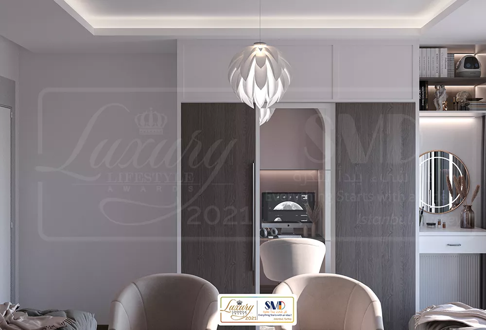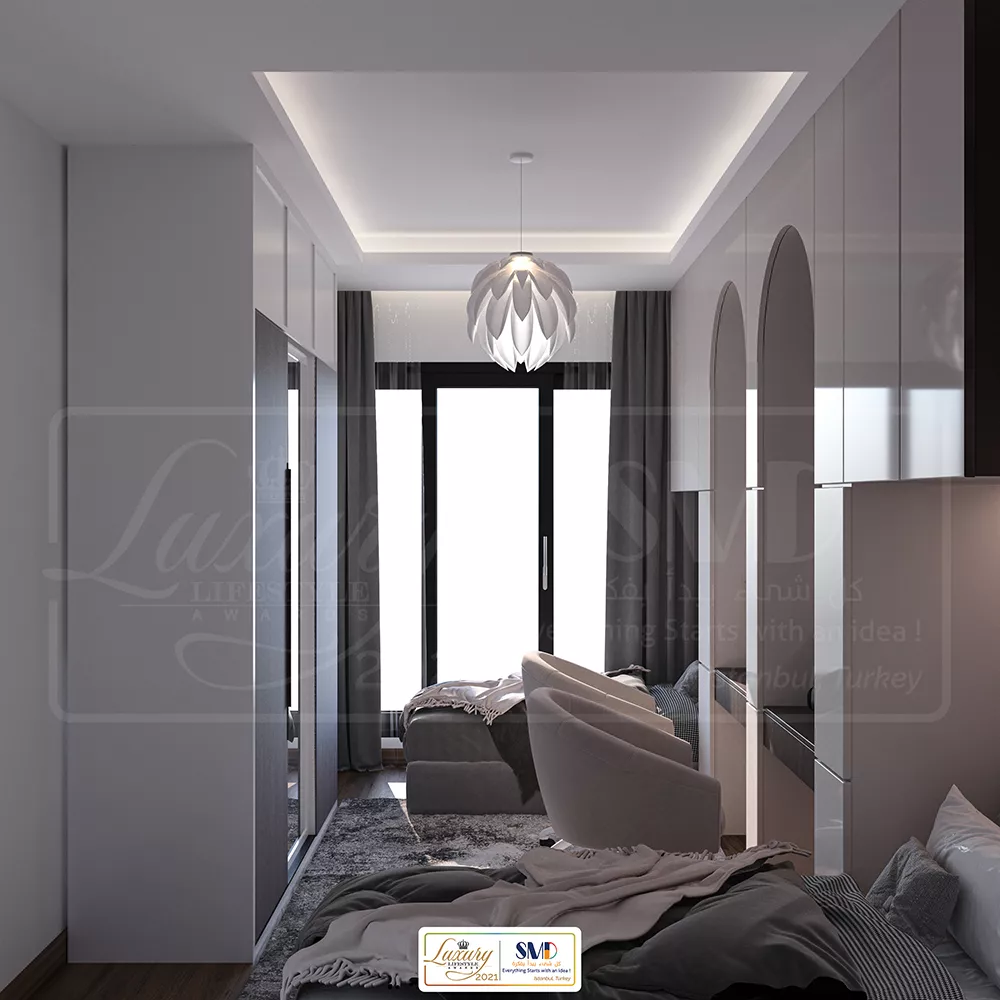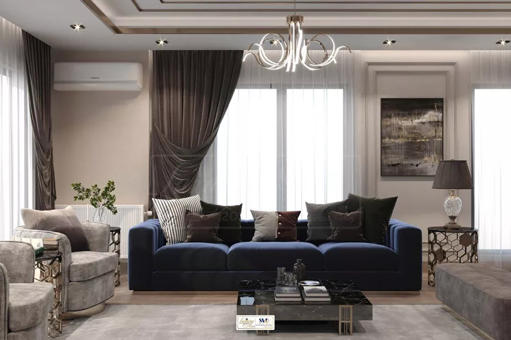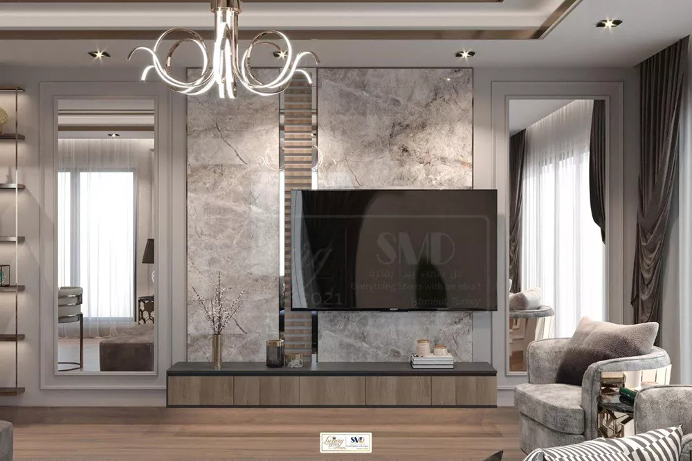 A residential apartment with four rooms, a salon, a kitchen, and two bathrooms designed and implemented in a neoclassical style in Turkey, Istanbul, by SMD GROUP. Our well-known interior design firm is known for its modern and neo-classical designs, which appear in both commercial projects and family homes. The project involved the use of high quality materials and the latest technology to complete the interior design. The team of engineers worked hard to complete the project within the standard working period. The end product was a luxurious space that reflects the modernity of Istanbul with a touch of classic sophistication.