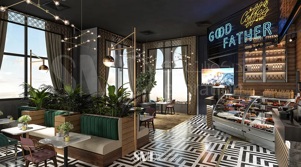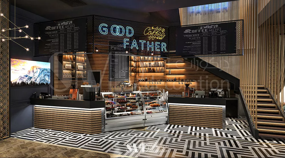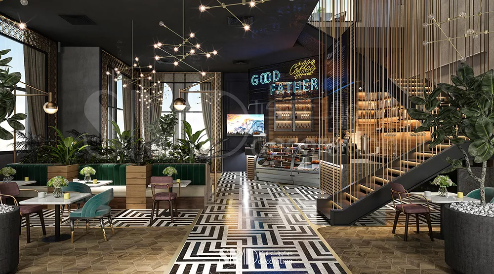 لتلبية أسلوب الحياة الحديث. تم تصميم الديكورات الداخلية للمقهى بمزيج من الزخارف الخشبية الدافئة والتشطيبات المعدنية. مزيج من الألوان الأسود والأبيض والرمادي والأخضر يخلق جوًا مريحًا. يقدم المقهى مجموعة واسعة من القهوة والشاي والحلويات والوجبات الخفيفة لإرضاء أكثر الأذواق تطلبًا. يعد مقهى GOD FATHER المكان المثالي للعمل والترفيه، بفضل تصميمه الداخلي الأنيق والخدمة اليقظة.
