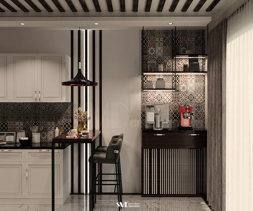 عمل فريق SMD بشكل إبداعي للتأكد من أن الفيلا مجهزة بمزيج مثالي من العناصر التقليدية واللمسات الحديثة. استخدموا أيضًا عناصر ديكور بوهو لخلق جو مريح في المنزل.